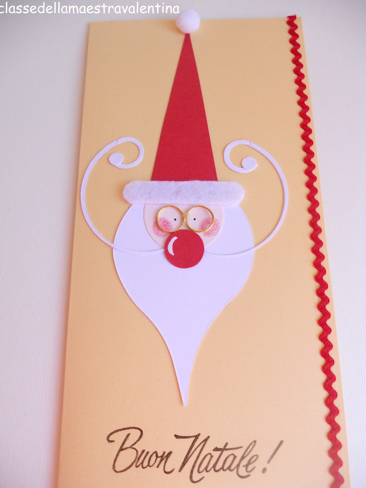 Piegate ogni pezzetto di nastrino. Biglietti il paese di babbo natale:Biglietto di natale per fare i migliori auguri di natale a tutti gli amici, conoscenti e parenti... La classe della maestra Valentina BABBO NATALE BAFFUTO Grazie per tutti i mi piace, preferiti, iscrizioni e.... . Un altro biglietto di natale con disegnato babbo natale.