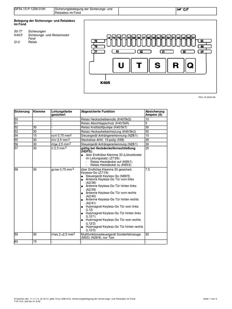 1- Sicherungsbelegung Opel Astra G Sicherungskasten Belegung