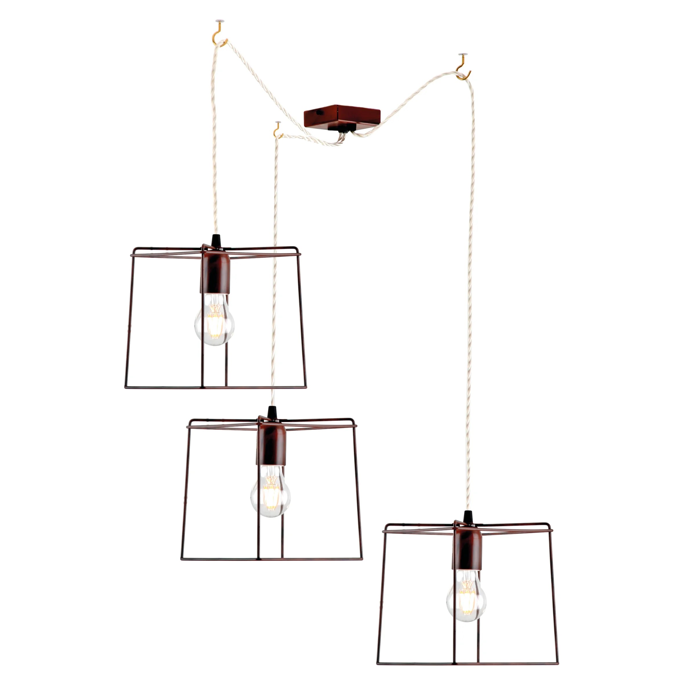 29> Lampadario Industriale Quadra Corte marrone in metallo, L. 60 cm, 3 ini