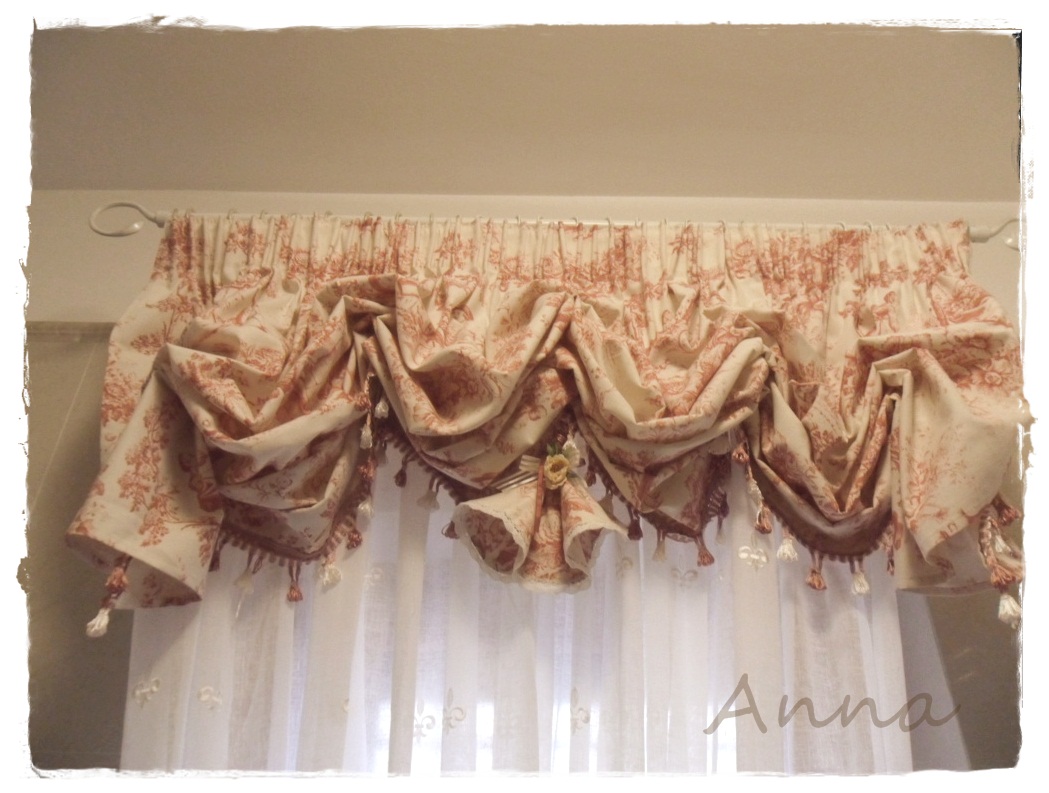 22> tenda in misto lino con balza sul fondo e rose in tessuto Tende da